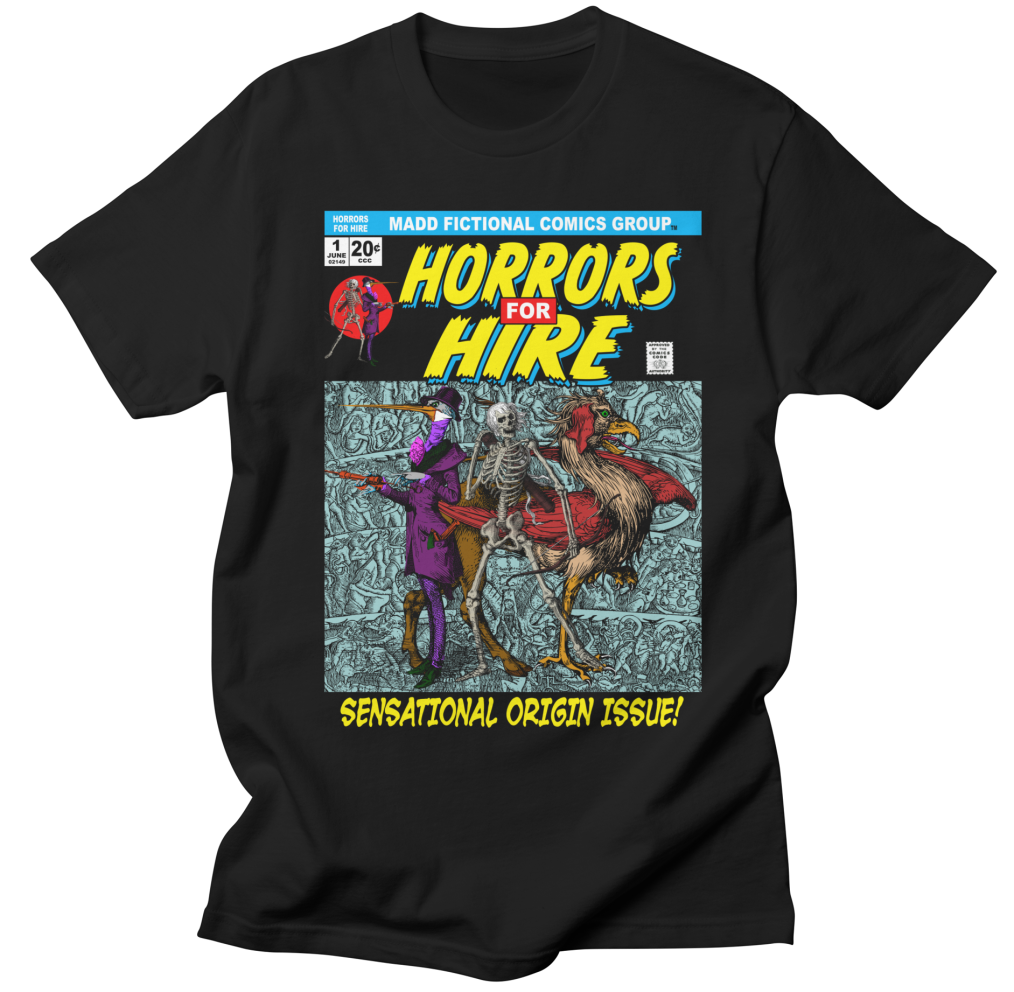 This design recreates the feel of classic comic book covers from the 1970s and is also available as art prints and other accessories, so why not browse my artist shop: https://maddfictional.threadless.com/ , pick yourself up a little something and help an old man out.