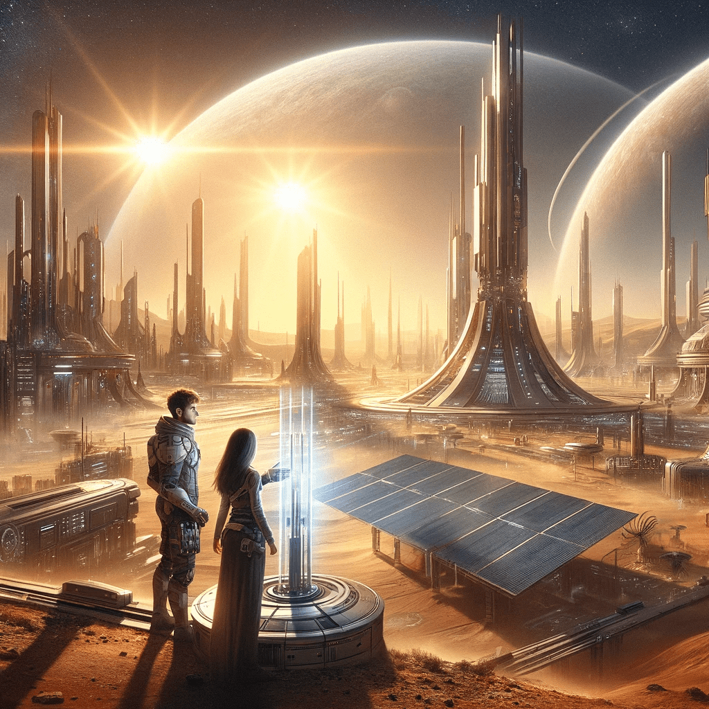 Amidst the metallic towers of Solara, young Eli, an apprentice in solar engineering, gazed skyward. “Why do we never have night?” he mused to his mentor, Dr. Cora.