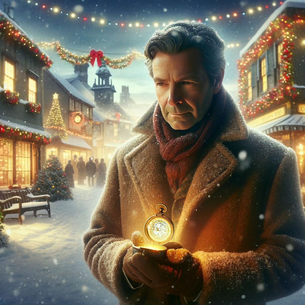 It was Christmas Eve in Winterhaven, and there I was, Detective Arthur Hale, walking through streets blanketed in shimmering white snow and twinkling Christmas lights. Wreaths with bold red bows hung on lampposts and the sounds of carolers carried on the crisp, cold air. To me, Christmas was just another day, another cold case in a year full of ’em.