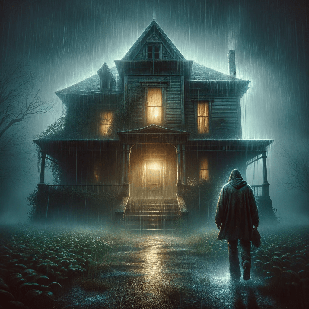 Ahead, through the veil of rain, an old house loomed. Its windows were like blinded eyes, boarded up long ago, and the lawn was an untamed sea of green. Yet, amidst its dilapidation, it promised the refuge he desperately sought. Jonah, driven by instinct more than thought, moved towards it.