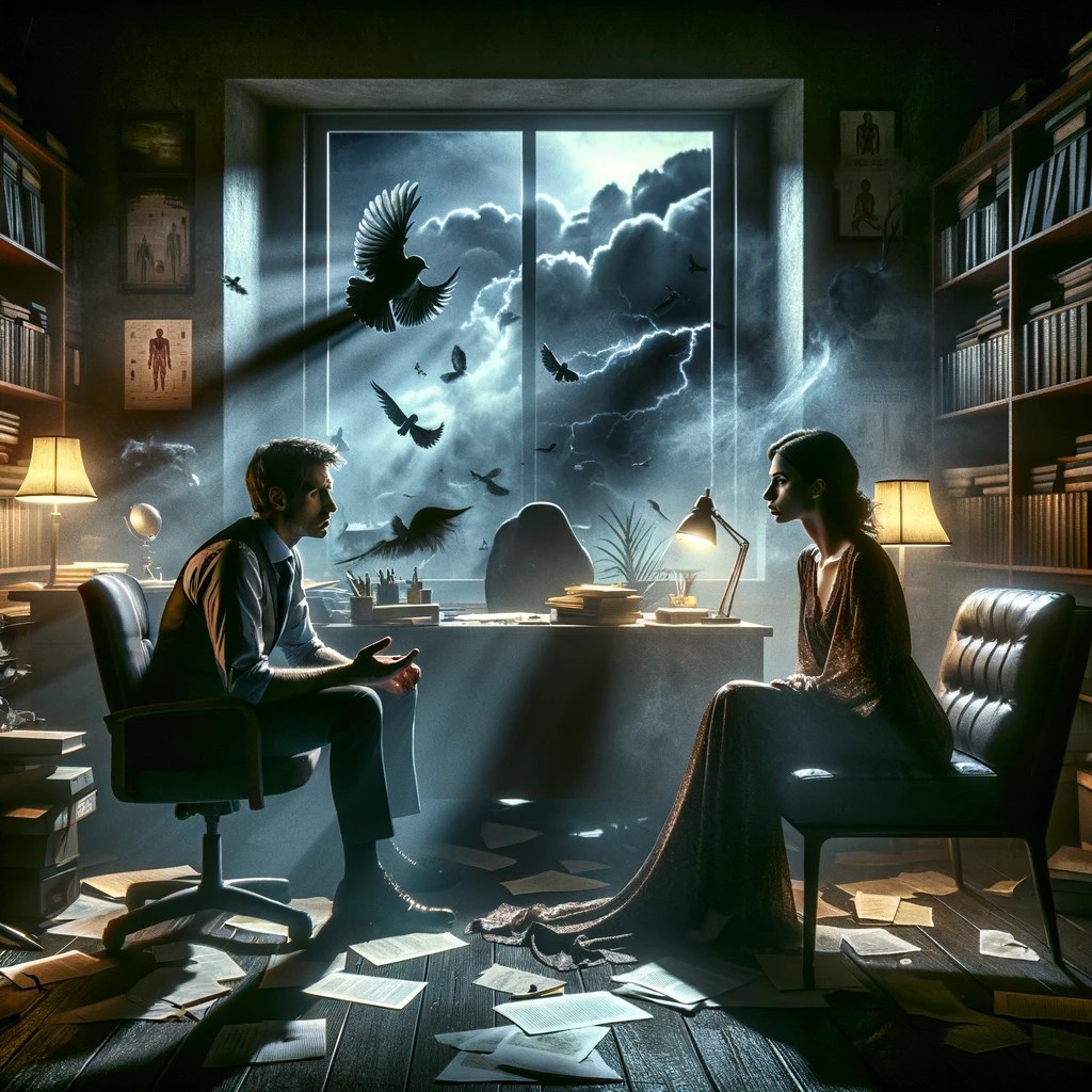 He leaned forward, fingers steepled. “Lay yourself bare, my dear. Let us exhume your demons together.”