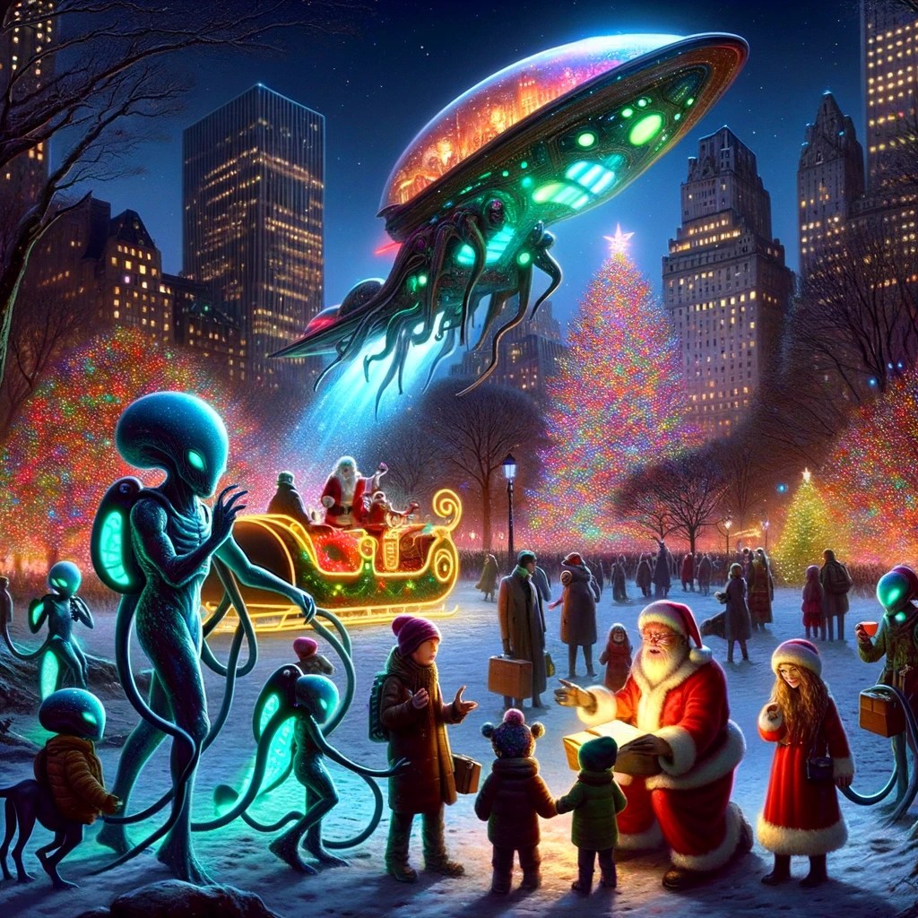 The cold, sterile void gave way to a bustling city square, alive with activity. Snow blanketed the ground, its pristine surface sparkling under a thousand twinkling lights. The air crackled with joy and the scent of pine. She froze, overwhelmed by the sights and sounds: the lilting melodies of carolers, the laughter of children, the warm hum of human connection.